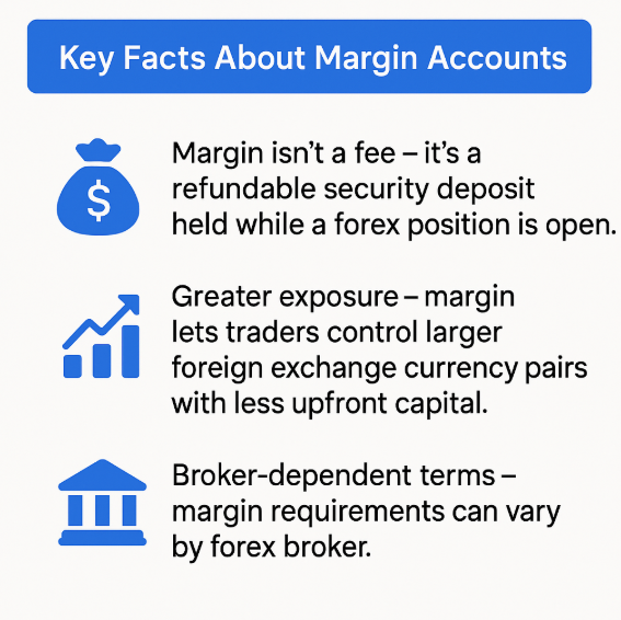 A margin account allows traders to control larger trades by depositing just a fraction of the full trade value—known as margin—rather than using the entire amount upfront.