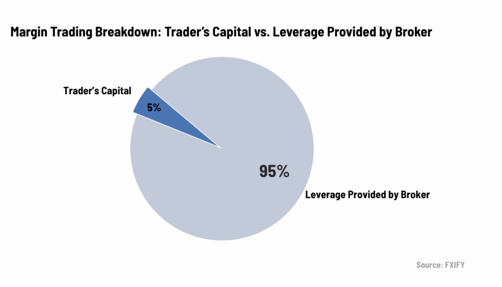 This means the trader controls a $100,000 position while only committing $5,000. The remaining $95,000 is provided by the broker through leverage.