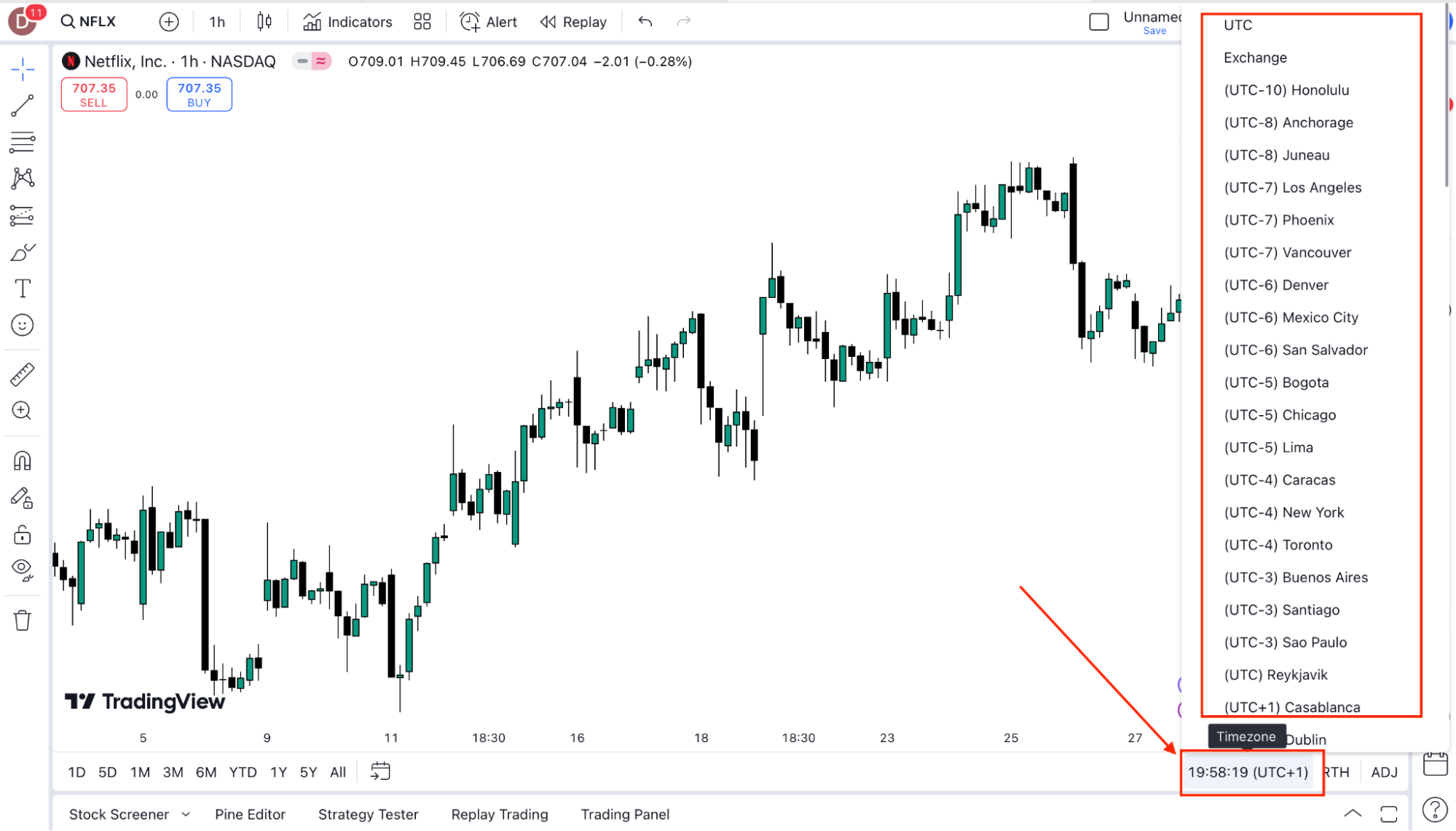 4. Your chart will automatically adjust to reflect the selected timezone.